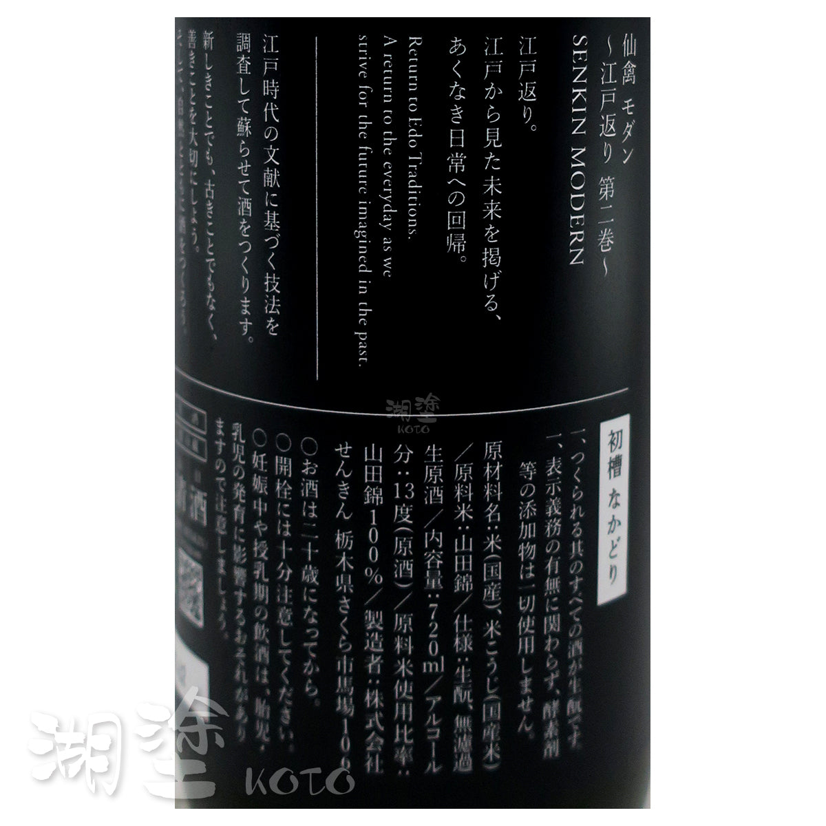 仙禽 初槽 なかどり (中取り) 生酛 無濾過 生原酒 720ml